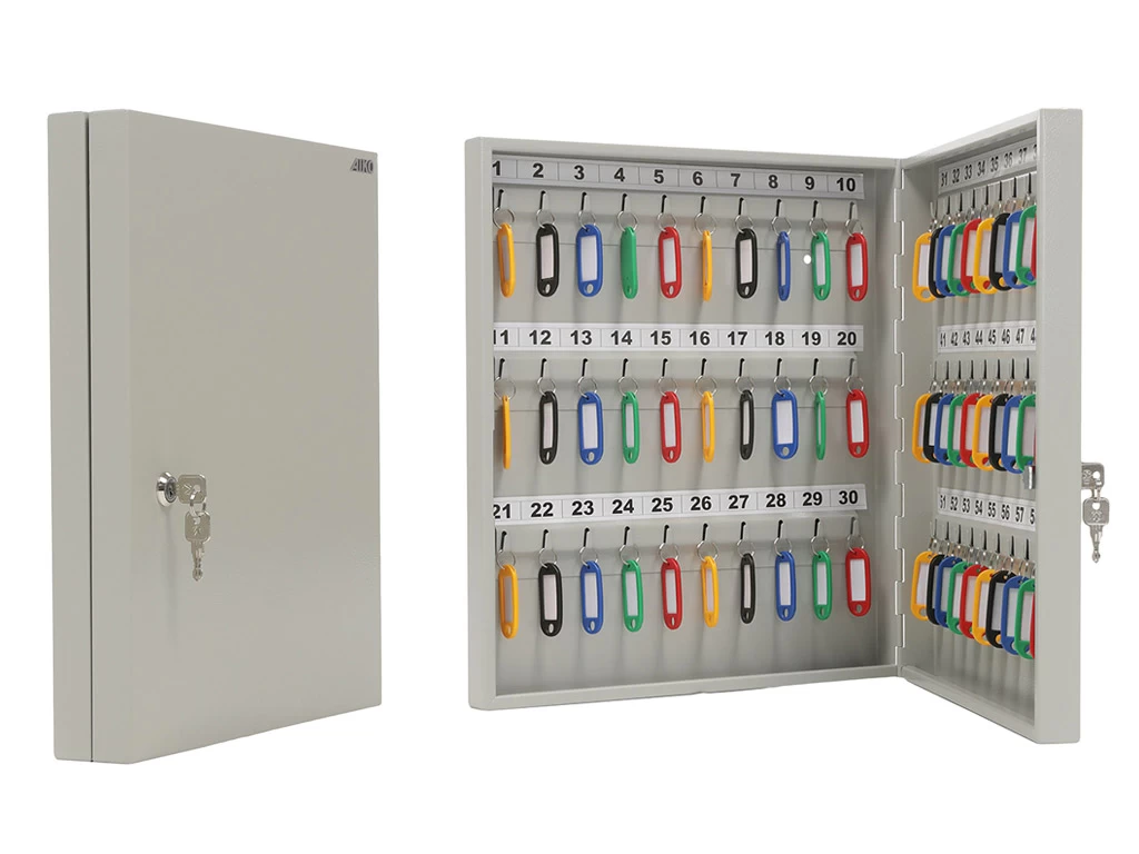 Ключницы KEY-60 оснащены металлическими крючками для навешивания ключей. Количество крючков - 60 шт.